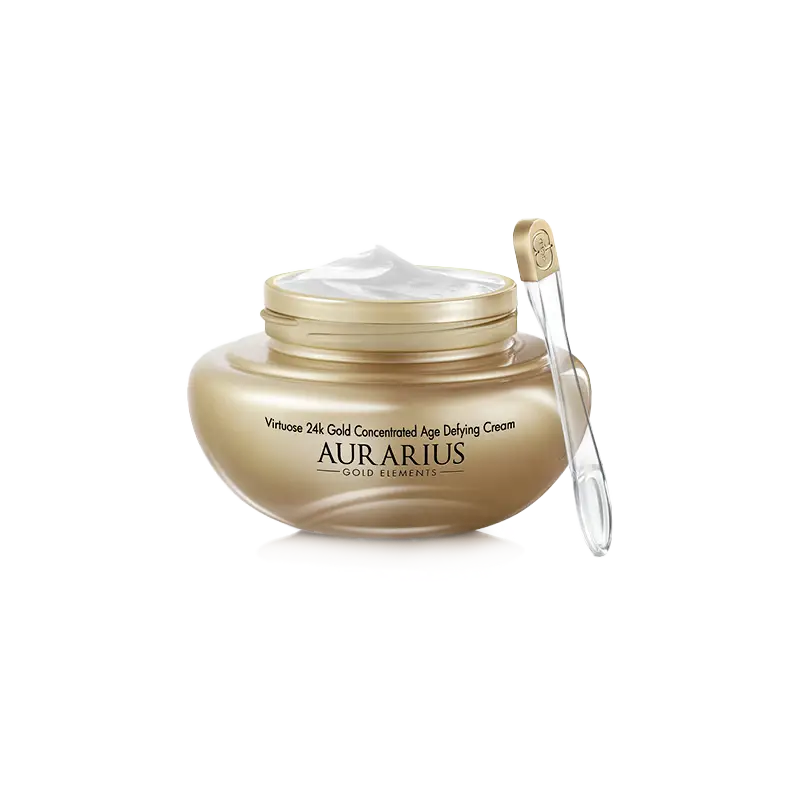 Introducing Aurarius, the pinnacle of luxury in skincare. Named after the Latin word for gold, Aurarius represents an elite collection of products and technology meticulously crafted to combat the aging process. Our journey began with years of rigorous research and experimentation, leading to the creation of a unique blend of nutrient-rich plant extracts and natural ingredients. Drawing from European traditions of advanced skincare, our formulas incorporate time-honored methods and innovative techniques, ensuring a sophisticated approach to rejuvenation. By infusing each product with award-winning extracts, genuine gold, and other proprietary elements, we have developed what we proudly call a “youth elixir.”